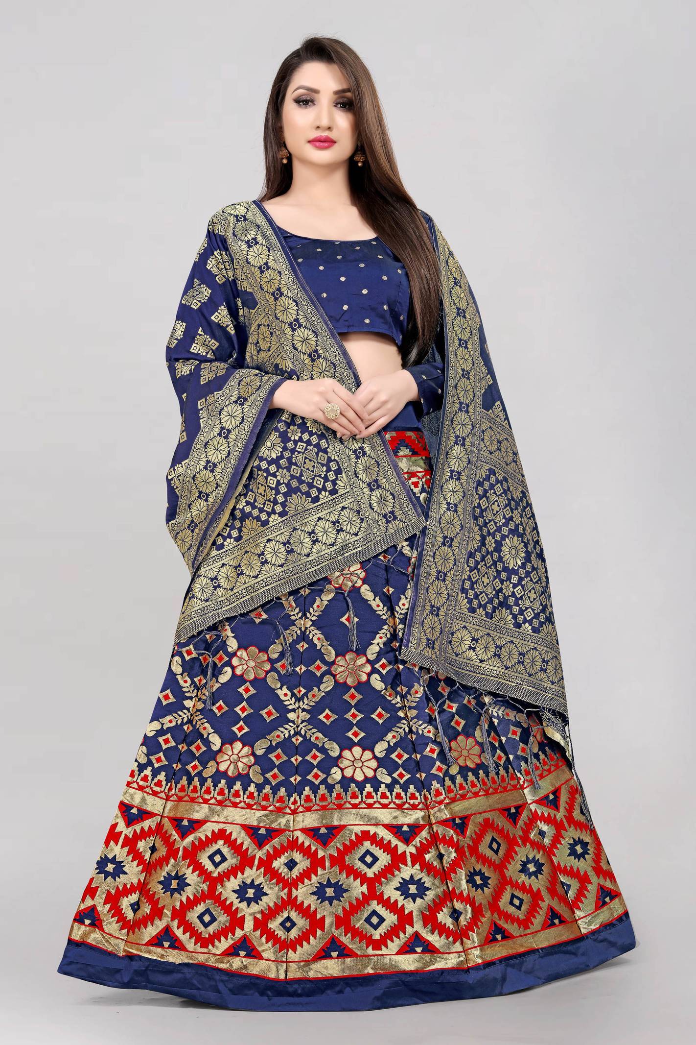 Divastri Name is enough to delight women. Our designer designed special collection Lehenga choli for Indian girls to wear in party and this festive season. This is perfect gift to your sister for this Raksha bandhan Navratri/and Diwali. Christmas, New Year. Lehenga Choli Fabric Lehenga fabric:Jacquard, Lehenga work Self design,Choli Fabric silk. with this fabric Lehenga choli looks so elegant. Banaras Silk Dupatta. This Lehenga choli Has different “Eight”colours so your favourite and get attraction in every events. Colour is slight different due to your visual setting of monitor and mobile screen. Style Tip: For an elegant look, long this lehenga Choli, with statement earrings & high heels. For a Stylish look, Material & Care: Dry clean only.