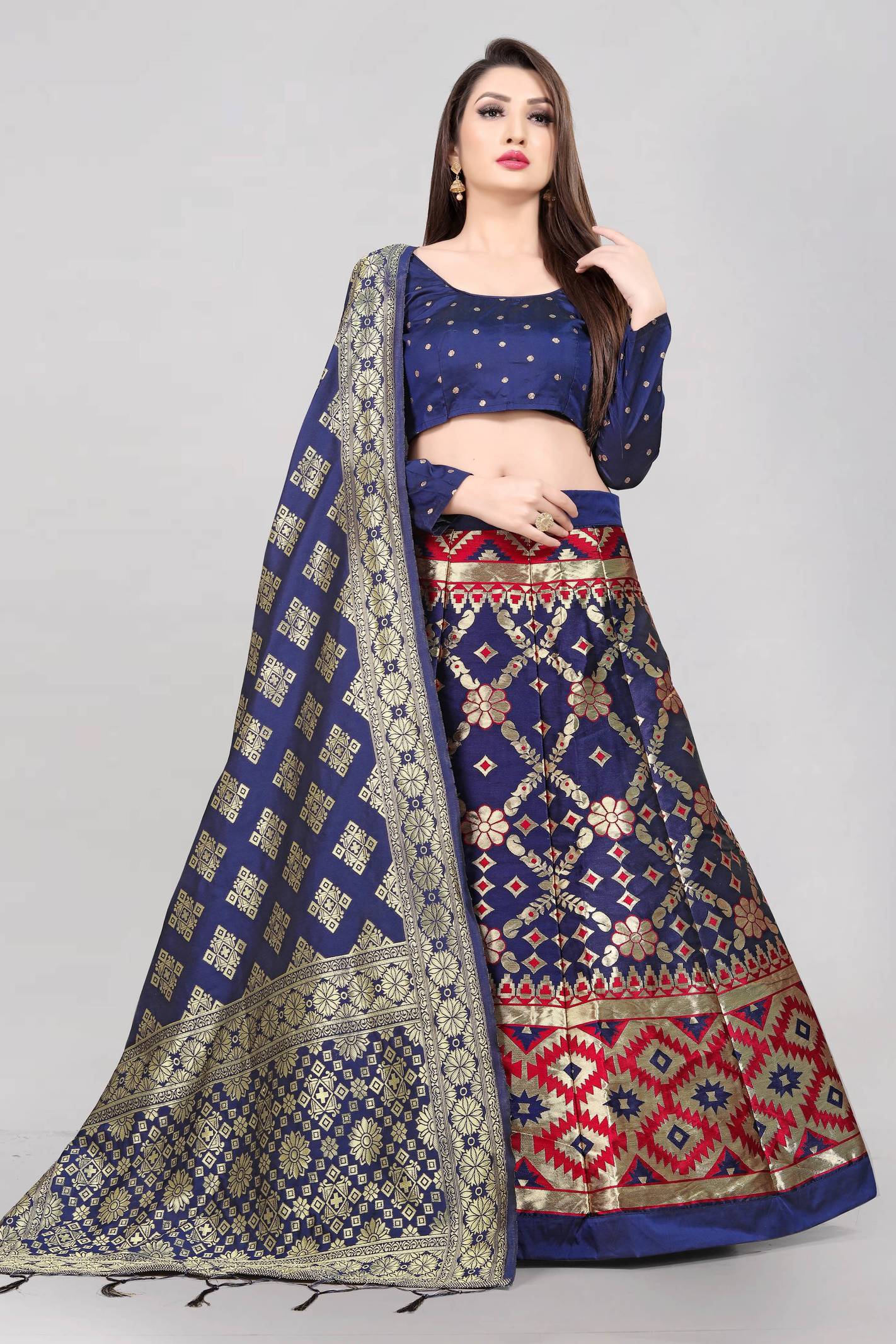Divastri Name is enough to delight women. Our designer designed special collection Lehenga choli for Indian girls to wear in party and this festive season. This is perfect gift to your sister for this Raksha bandhan Navratri/and Diwali. Christmas, New Year. Lehenga Choli Fabric Lehenga fabric:Jacquard, Lehenga work Self design,Choli Fabric silk. with this fabric Lehenga choli looks so elegant. Banaras Silk Dupatta. This Lehenga choli Has different “Eight”colours so your favourite and get attraction in every events. Colour is slight different due to your visual setting of monitor and mobile screen. Style Tip: For an elegant look, long this lehenga Choli, with statement earrings & high heels. For a Stylish look, Material & Care: Dry clean only.