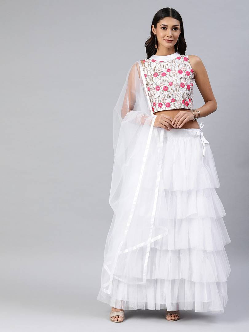 Divastri Solid Semi Stitched Lehenga Choli (White)