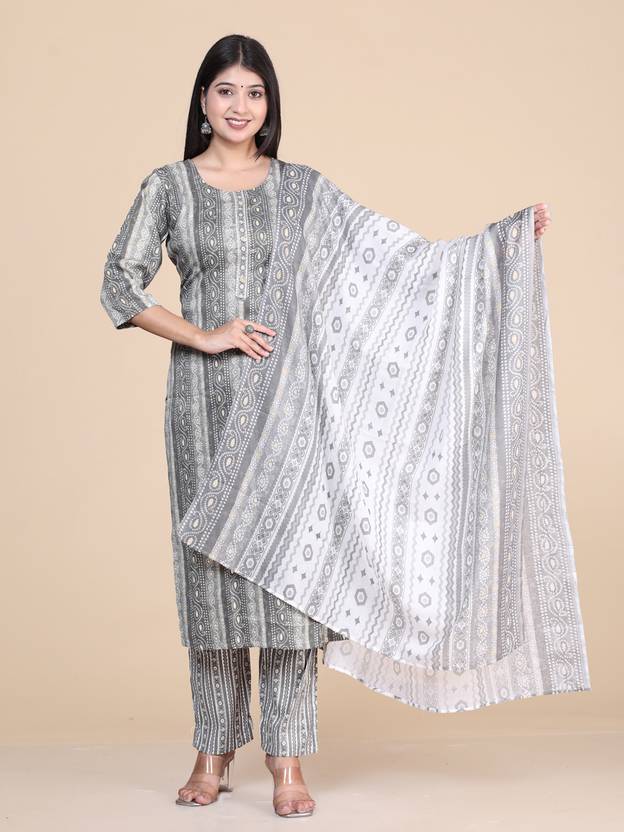 Add a touch of elegance to your ethnic wardrobe with the Divastri Women Cotton Blend Kurta Pant Dupatta Set in Grey. Made from high-quality cotton blend fabric, this set offers both comfort and style. The kurta features intricate detailing and a flattering silhouette, while the matching pants provide a comfortable fit. Complete the look with the coordinating dupatta, which adds a touch of sophistication to your ensemble. Perfect for festive occasions, casual outings, or special events, this set is a versatile addition to any woman's wardrobe.