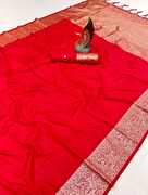 Divastri Woven Banarasi Cotton Silk Saree (Red)