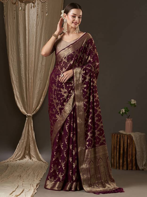 Divastri Woven Banarasi Georgette Saree (Purple)