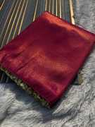 Kubera Pattu Softy Silk Saree With Traditional Lace and Copper Zari Ethnic Motif