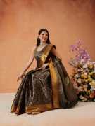 The Chevron Classical Weaving Ikkat Zari Woven with Kanjivaram Border Saree is a stunning fusion of traditional craftsmanship and contemporary design, embodying the rich heritage of Indian textiles. The chevron design lends a modern twist to the traditional saree, creating a dynamic visual effect that captures attention. This saree features a wide Kanjivaram border, which is traditionally known for its intricate craftsmanship and rich color palettes. The zari work intricately woven into the fabric not only adds shimmer but also tells stories through its designs, often reflecting cultural and mythological themes.