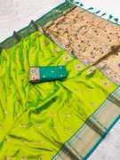 Divastri Woven Paithani Cotton Silk Saree (Light Green)