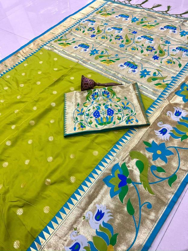Explore The Collection Of Beautifully Designed Saree. Saree: Parrot Green || Saree Work: Zari Woven work || Saree Fabric: Cotton SIlk | Blouse Fabric: Cotton SIlk|| These Saree Are Perfect For Occasions And Events Anytime Of The Day Or Night.