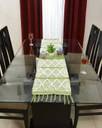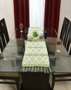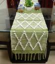 Bring elegance and warmth to your dining space with this handwoven green and white cotton table runner. Designed with a modern geometric pattern and finished with stylish tassels, this table runner enhances the beauty of your dining table, center table, or console table.