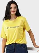 Diversify Printed Women Round Neck Yellow T-Shirt