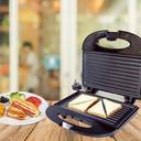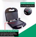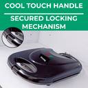 "Secured locking mechanism The push down lock mechansim makes it easy to open/close for complete safe operation.The ergonomically designed cool touch handle supported with handle lock allows easy locking/unlocking of the product. ", "Non-stick plates The non stick plates helps in easy cleaning by supporting easy removal of sandwiches post toasting. ", "Light Indicator The red light indicates the unit is turned on. Green light indicates the plates have been preheated and the breads can be put in. ", "Plate Types Non-stick deeper grooves provided in the plates for more filling"