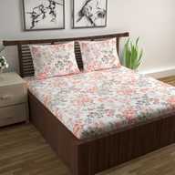 Divine Casa Cotton Double Flat 144 TC Floral Bedsheet (Pack of 1, Papaya Punch)