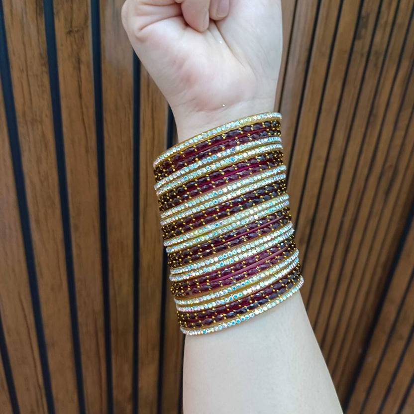wine & Golden Sparkle Bridal Chooda / Wedding Bangles Set for Women