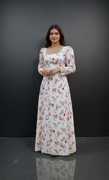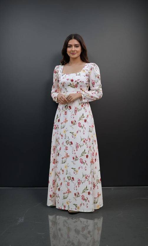 * Dress Fabric : Crepe|| * Style : Flare Straight || * Length : full Length * Sleeves : full Sleeves || Sleeve Styling : Puffed sleeves || * Neck : square neck * Ocassion: Casual || Party || Wedding || Festival || Formal *back Neck :- Round Neck with a beautil bow knot|| * Design:- A line floral print || • FABRIC AND DESIGN: The crepe fabric in this attractive color ready to wear gown dress will make sure that the fitting of this beautiful readymade dress looks elegant on you in addition with beautifully designed puffed sleeves and Crafted from crepe fabric, it is light in weight and will be soft against your skin. • DESIGN AND COLOUR: Its has unique design and beautiful colour will fetch a lot of second glances as you club it with contrast colored pumps and flashy accessory. • STICHED: Our Products are Made and stitched using high grade fabrics and yarns under the strict surveillance of our well-versed Executives. • READY TO WEAR:It is capable of making you look gorgeous. Wear it and put your step in the world of fashion. It looks stunning every time you match it with every kind of accessories and gives you a stunning look.