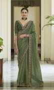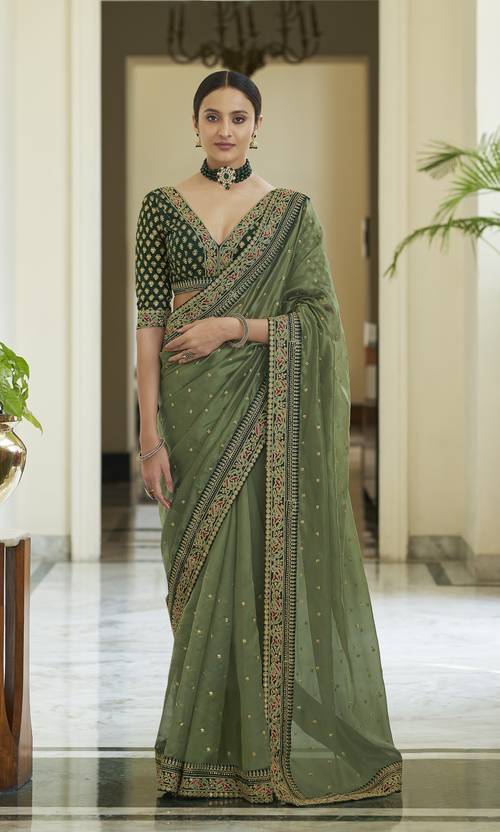 DIVINE INTERNATIONAL TRADING CO Embroidered Bollywood Organza Saree (Green)