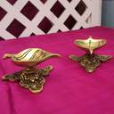 Divine Mantra Brass Laxmi Diya for Pooja Room Kuthu Vilakku Puja Items Home Deepam Oil Lamp Indian Diwali Decoration Item Mandir Decor Backdrop Decorative Handmade Lamps Set of 2 Brass Table Diya (Height: 1.7 inch)