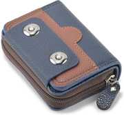Durable artificial leather exterior: Provides a sleek, polished look while offering protection from wear and tear., Compact and lightweight design: Ideal for carrying in pockets or small bags, offering convenience without bulk., Textured surface: Ensures a firm grip, reducing the risk of accidental slipping., Reinforced stitching: Adds strength to the wallet, enhancing durability and longevity., Smooth zipper mechanism: Allows easy access to the enclosed compartment, ensuring secure storage., Metallic Tich buttons: Provide a secure closure while adding a stylish touch to the overall design.