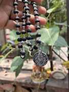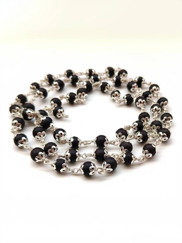 Divine rudras Original Silver Karungali Malai 8 mm 54+1 Beads, Silver Ebony Beads Silver Plated Wood Chain
