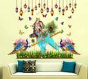DivineDesigns 72 cm Radha Krishna Murli Manohar Butterfly Peacock Wall Sticker Self Adhesive Sticker (Pack of 1)