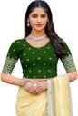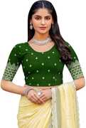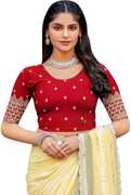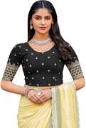 SheAndParag Elegant and opulent, this blouse features luxurious heavy fabric adorned with intricate embroidery cascading across the entirety of the blouse, complemented by delicate stone work embellishments on the sleeves. Women's Stretchable Casual and Partywear Blouses and Fully Comfortable Stretchable Blouse for Women, This enhances the overall look of the blouse and gives it an elegant look. This readymade blouse is the epitome of sophistication, perfect for wedding and bridal wear. Tauras embroidery Designer Blouse for Women