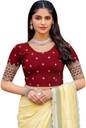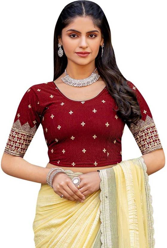 SheAndParag Elegant and opulent, this blouse features luxurious heavy fabric adorned with intricate embroidery cascading across the entirety of the blouse, complemented by delicate stone work embellishments on the sleeves. Women's Stretchable Casual and Partywear Blouses and Fully Comfortable Stretchable Blouse for Women, This enhances the overall look of the blouse and gives it an elegant look. This readymade blouse is the epitome of sophistication, perfect for wedding and bridal wear. Tauras embroidery Designer Blouse for Women