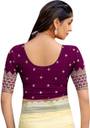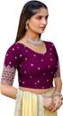 SheAndParag Elegant and opulent, this blouse features luxurious heavy fabric adorned with intricate embroidery cascading across the entirety of the blouse, complemented by delicate stone work embellishments on the sleeves. Women's Stretchable Casual and Partywear Blouses and Fully Comfortable Stretchable Blouse for Women, This enhances the overall look of the blouse and gives it an elegant look. This readymade blouse is the epitome of sophistication, perfect for wedding and bridal wear. Tauras embroidery Designer Blouse for Women