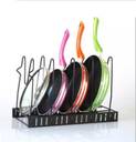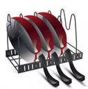 Designed with a spot to place all sizes of lids, spoons, knife, Chopping board and cooking utensils, keeping your counters and stovetops clean and tidy. Multi-Purpose pot rack for Kitchen Pots, pans, lids, chopping boards, griddles, splatter screens, and other cooking utensils .Anti-rust surface treatment to ensure easy cleaning, optimal esthetics, and lasting durability. Our cookware rack has 4 distance-adjustable shelves that can be calibrated to accommodate cookware like pan, pot, saucepan, griddles of different sizes. U-shape frame biomechanical design, reinforced metal structure, built of heavy duty metal which suits all pans at home. For good organization of your kitchenware and easy access to them, to prevent pans from getting scratched . Esthetic and good workmanship of mat black surface electroplating for easy cleaning. Foldable pan rack that can be placed vertically or horizontally free standing or mounting on wall, saving a lot of cabinet/countertop space. high durability and smooth surface, prevent from damaging the pot coating, safe and healthy environment protection. Protect you and your family safety.
