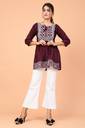 Casual Regular Sleeves Embroidered Women Maroon Top