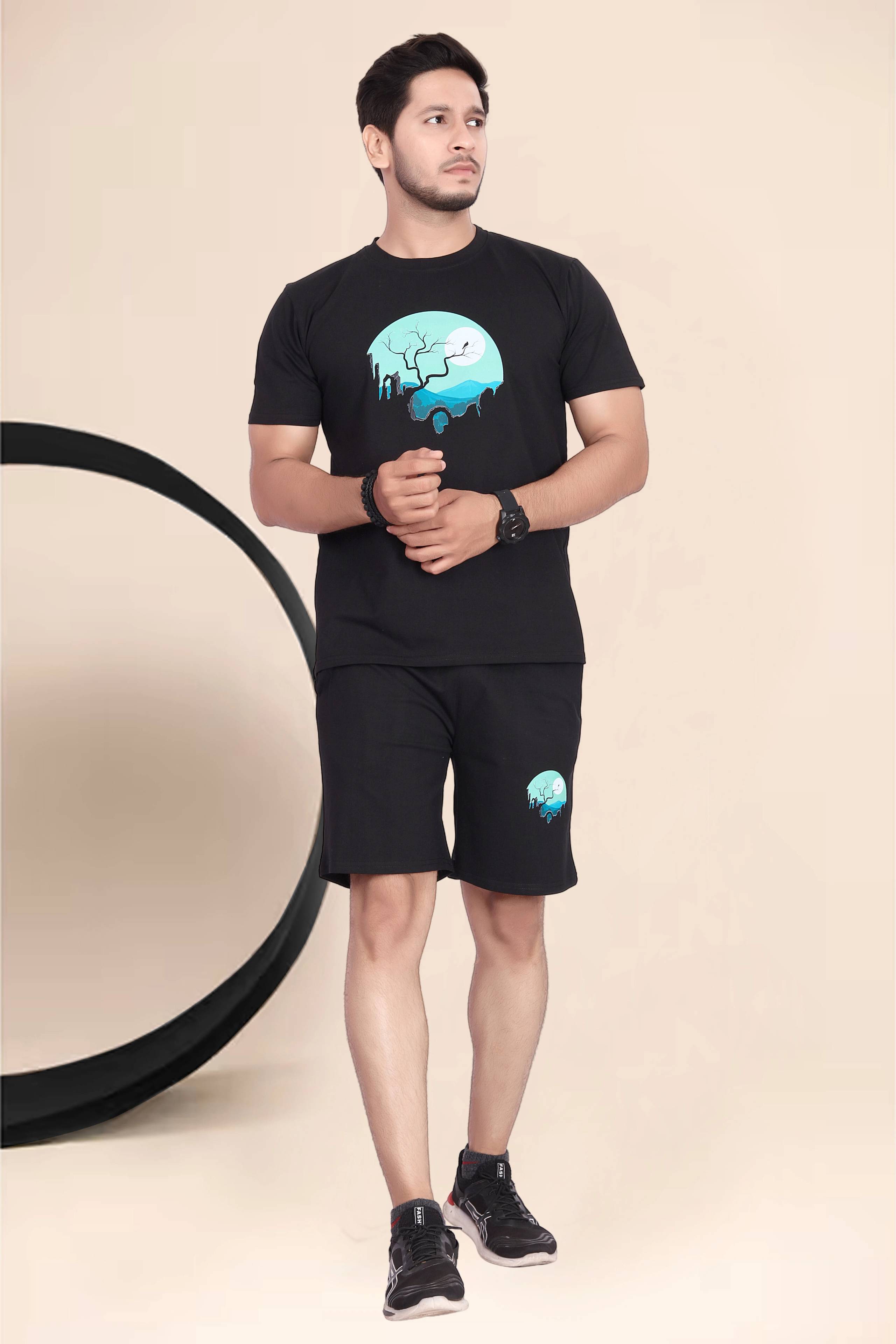 Unwind in style with this ultra-cool and comfy men’s night suit from Divra Clothing. Crafted from soft, breathable cotton fabric, this co-ord set includes a half-sleeve T-shirt and matching shorts featuring a stunning moonlit landscape print. Whether it's lounging at home, bedtime, or casual errands, this nightwear ensures effortless style and comfort.