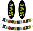 Divya Mantra Tibetan Prayer Flags Om Mani Padme Hum Trishakti Yantra Sri Shiva Decorative Showpiece - 11 cm (Plastic, Multicolor, Green, Black)