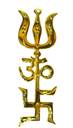 The trident of Shiva is the symbol of the three qualities of Nature, the three gunas, and hence the three functions of Creator, Preserver, and Destroyer. In the microcosm the trident represents the three subtle arteries of the body, ida, pingala, and susumna, which, according to the theory of yoga, ascend from the root center at the base of the spinal cord to reach the "lotus of a thousand petals" at the summit of the head. The trident is also the giver of punishment on the spiritual, subtle and physical planes. Sanskrit for punishment is 'shula', hence the trident is called 'trishula', tri = three. As the trident bearer Shiva is known as 'Shulin'. OM is the symbol of essence of Hinduism. It means oneness with the Supreme, the merging of the physical being with the spiritual. It is the most sacred syllable, the first sound of the Almighty. Swastika means luck or auspicious object, and in particular a mark made on person and things to denote good luck. Design: Made in heavy brass. It can be used has a wall hanging.Bring Home This Majestic Om And Evoke The Spirituality Within You. In India The Three Most Auspicious Signs Are Those Of " Swastik - Om And Trishul " .Hence If All These Three Signs Are Displayed Together On The Out Side Of Main Door, It Is Supposed To Be Very Lucky And Also Protects The People Living Inside The House From All Types Of Evil Eyes. This Sign Known As "Trishakti" Can Also Be Used In The Office Or It Can Be Kept In The Purse, Briefcase Etc. With Very Good Result. The Perfectly Crafted Om Will Have Evreyone'S Heart Connected To Spirituality. Place It In Pooja Room For A Devotional Touch Or Place In Your Living Room For An Antique Touch