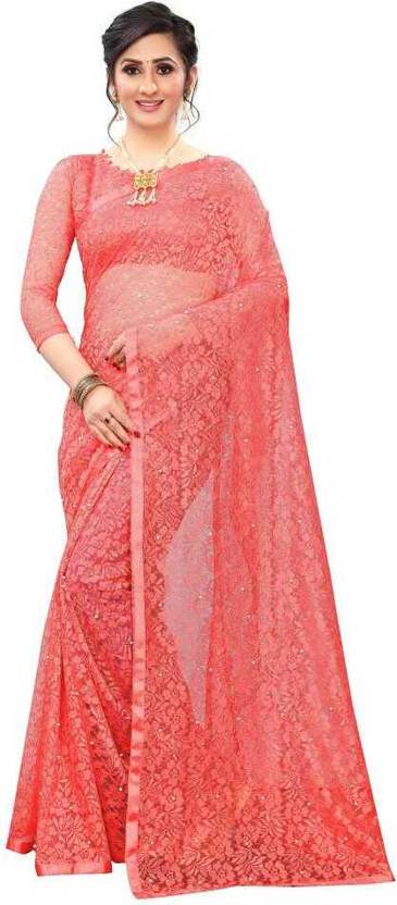 MARUTIENTERPRIS Self Design Bollywood Net Saree (Pink)