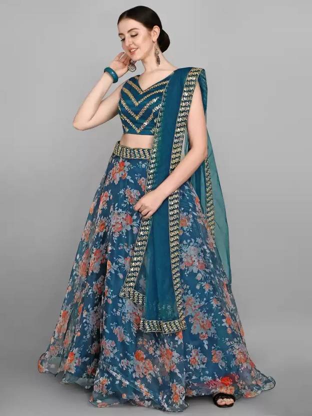 DIVYAM FAB Digital Print Semi Stitched Lehenga Choli (Blue)