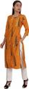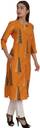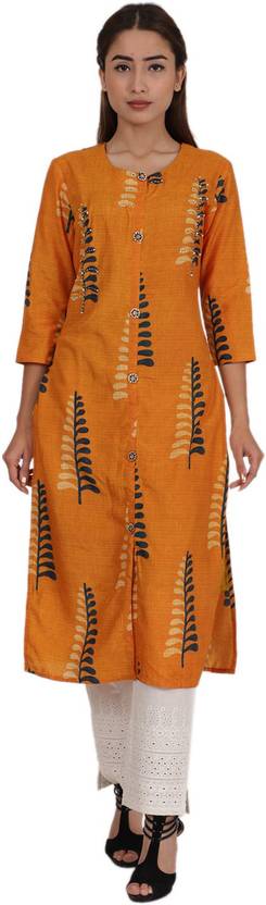 Muslin Printed Straight Kurta Knee Length 1 Kurta 3/4th Sleeves With Round Neck Casual, Festive & Party Wear; Highlight with buttons Product colour may slightly vary due to photographic lighting sources or your monitor settings
