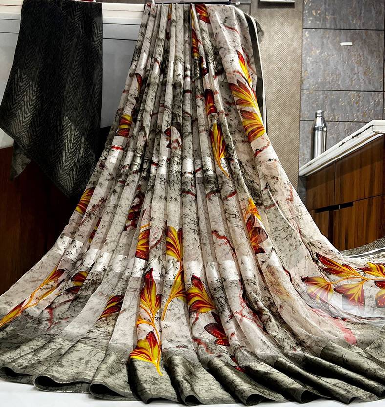 Printed, Solid/Plain Bollywood Georgette Saree (Grey)
