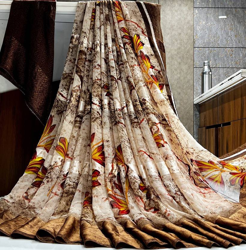 A Floral Print Georgette Satin Patta Saree is a type of saree that combines different fabric materials and printing techniques to create a unique and stylish look. Here's a breakdown of its components: