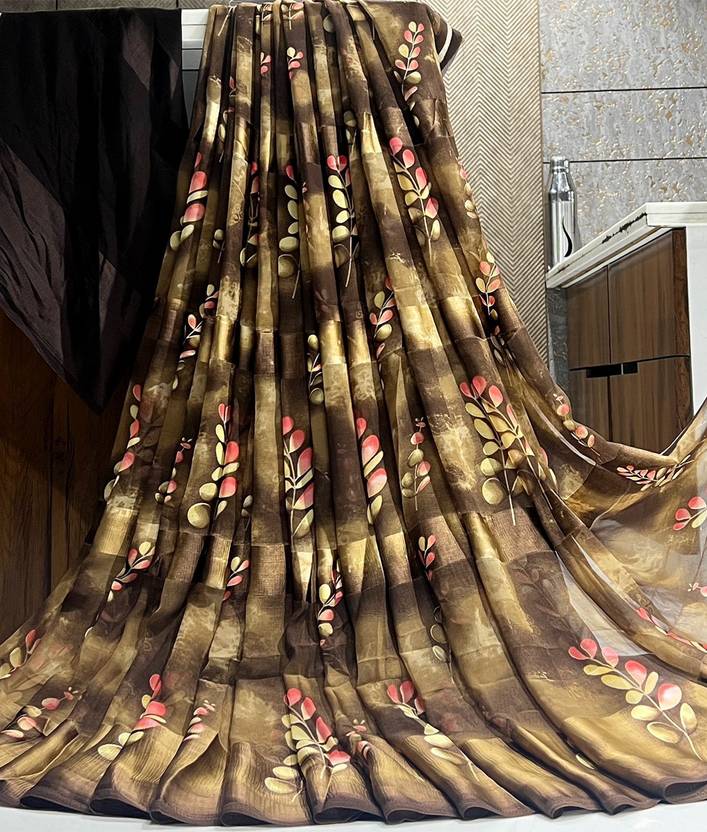 divyapriya Printed, Solid/Plain Bollywood Georgette Saree (Mustard)