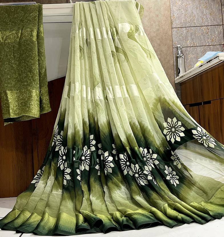 divyapriya Printed, Solid/Plain Bollywood Georgette Saree (Green)