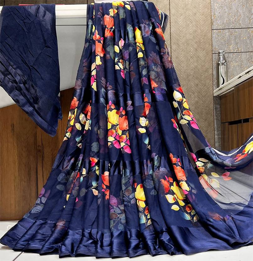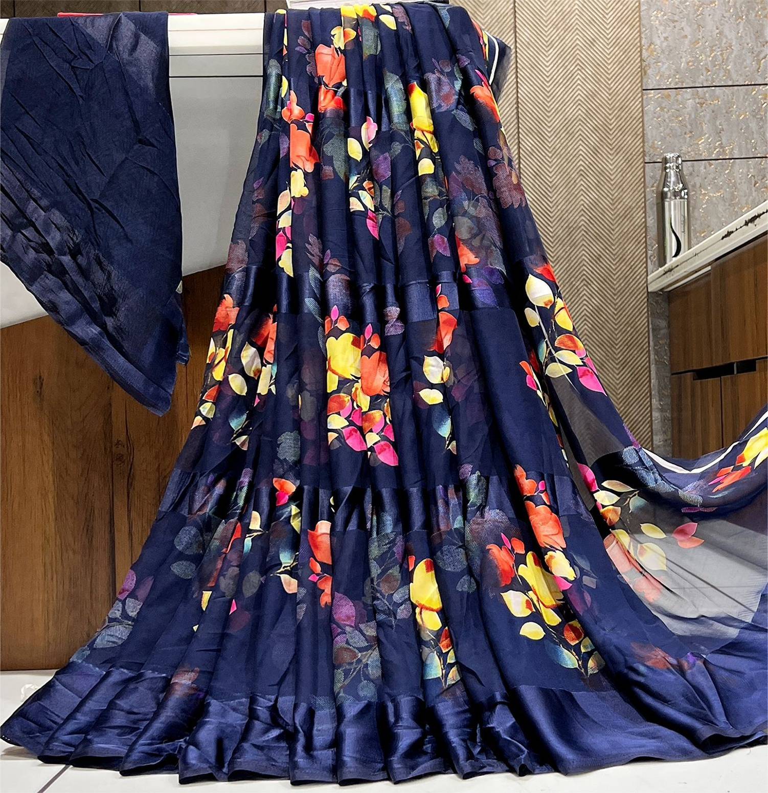 divyapriya Printed, Solid/Plain Bollywood Georgette Saree (Dark Blue)