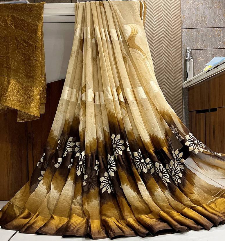 divyapriya Printed, Solid/Plain Bollywood Georgette Saree (Mustard)