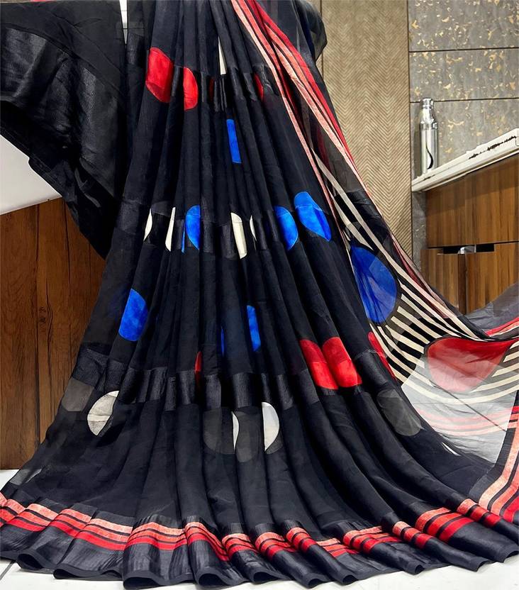 Printed, Solid/Plain Bollywood Georgette Saree (Red)