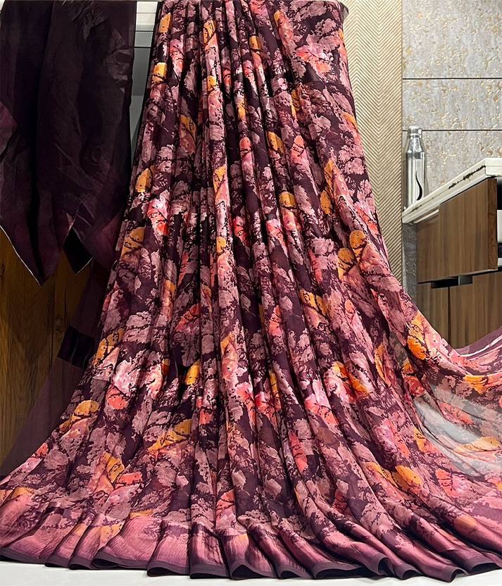 divyapriya Printed, Solid/Plain Bollywood Georgette Saree (Magenta)