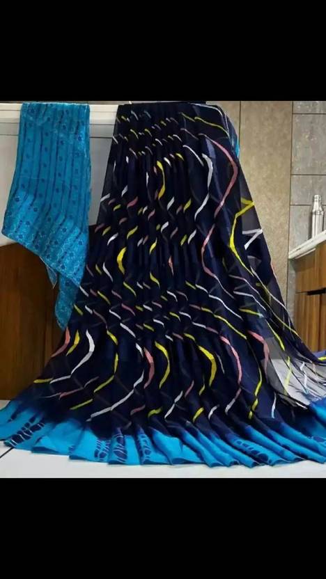 Triyasha Printed Bollywood Georgette Saree (Dark Blue)