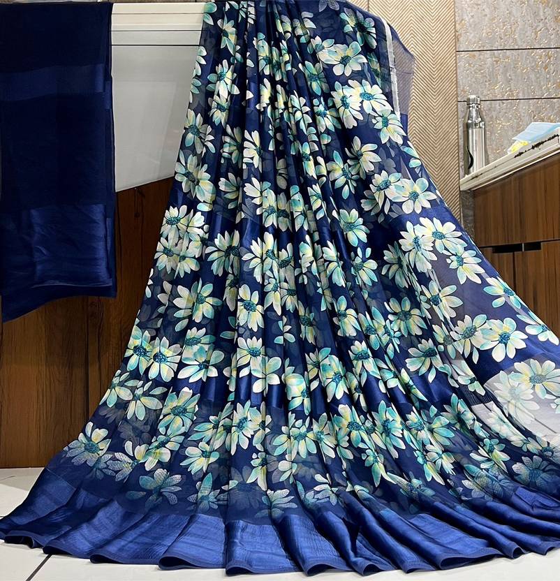 divyapriya Printed, Solid/Plain Bollywood Georgette Saree (Blue)