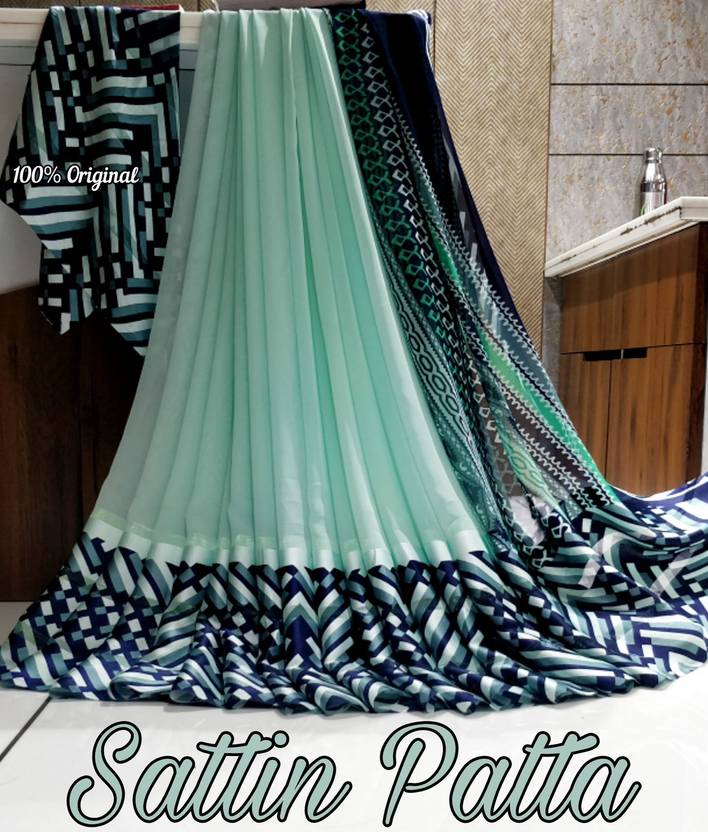 Printed, Solid/Plain Bollywood Georgette Saree (Blue)