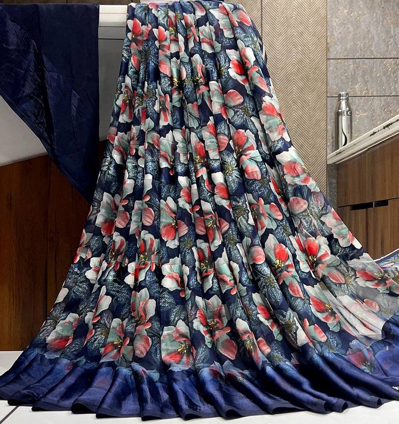 divyapriya Printed, Solid/Plain Bollywood Georgette Saree (Dark Blue)