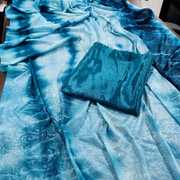 Printed Bhagalpuri Silk Blend Saree (Blue)