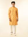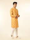 Radiate a vibe of brilliance with this breezy mustard kurta for men. Made from cotton blend fabric, it ensures comfort along with style. The vibrant mustard color is sure to make a strong style statement at any ensemble. Suitable for any get-together, it's your perfect ethnic wear partner.