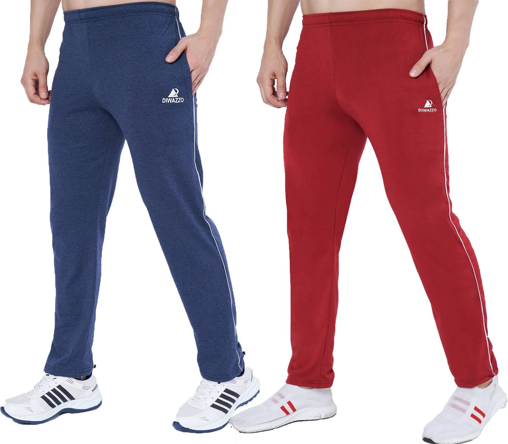 Diwazzo Solid Men Maroon, Light Blue Track Pants