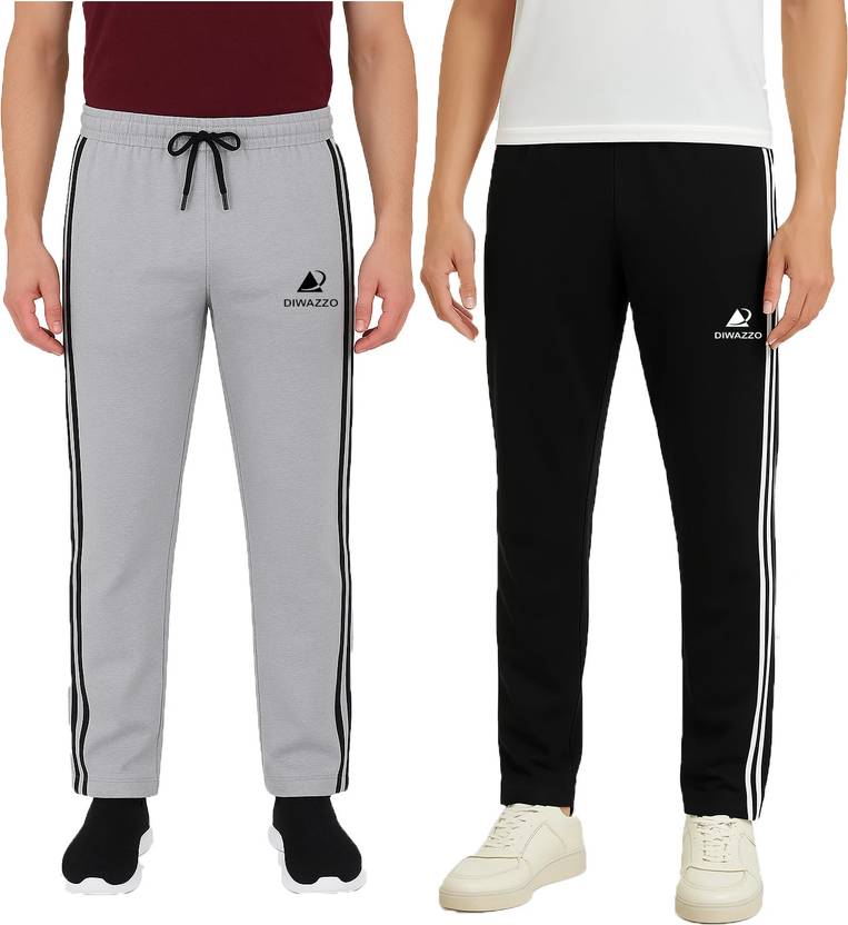Diwazzo Solid Men Silver, Black Track Pants