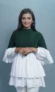 THE TOP IS REALLY VERY ATTRACTIVE FOR ITS DESIGN.THE TWO TONE TOP COMES UP WITH BUTTON CLOSURE AT THE BACK.YOU CAN CARRY THE TOP TO ADD CONFIDENCE TO YOUR PERSONALITY.