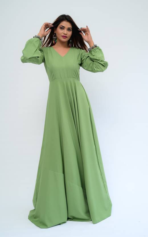 Women Maxi Light Green Full Length Dress